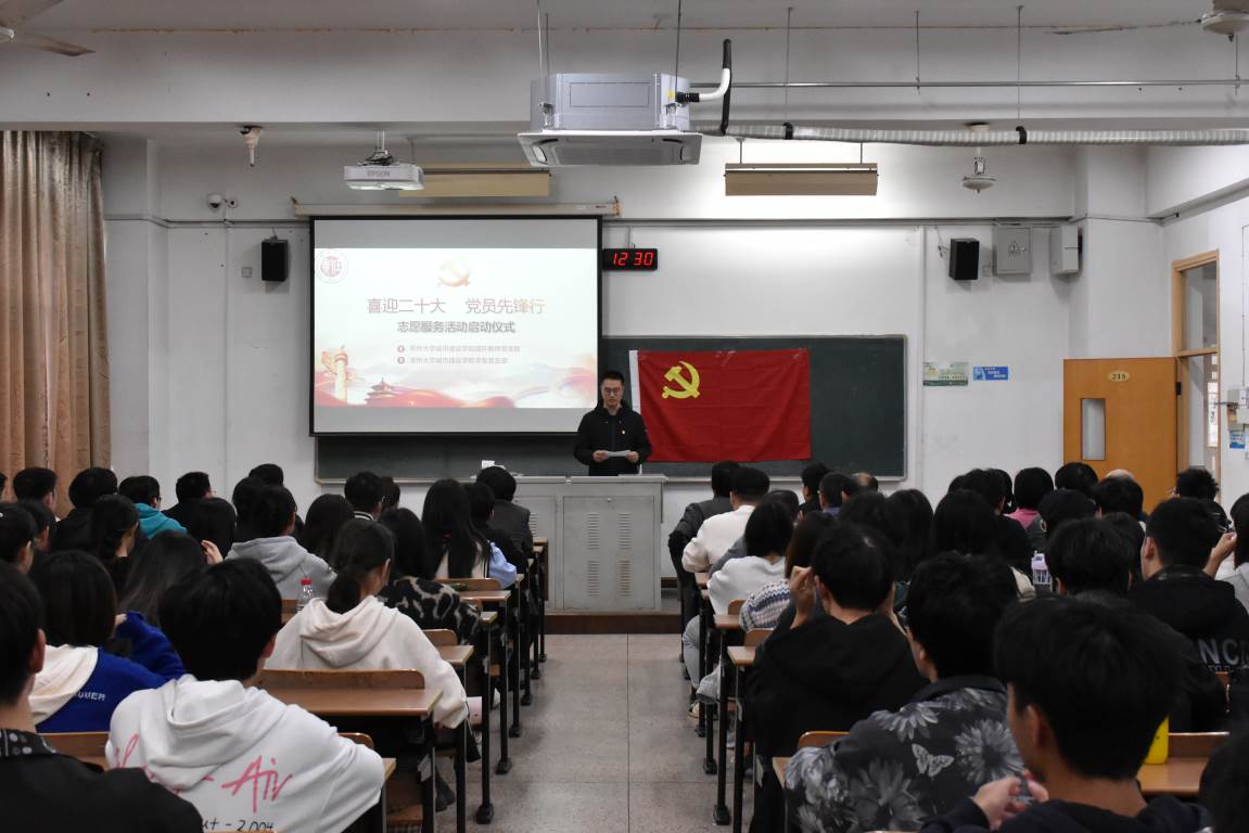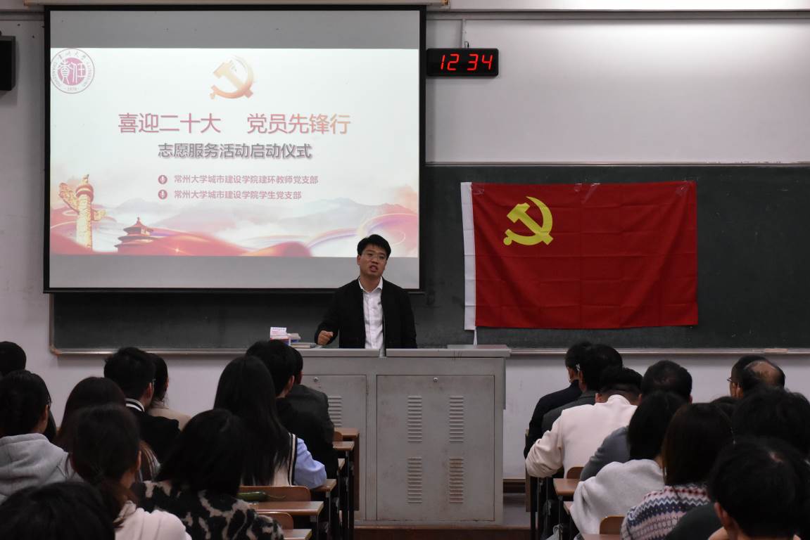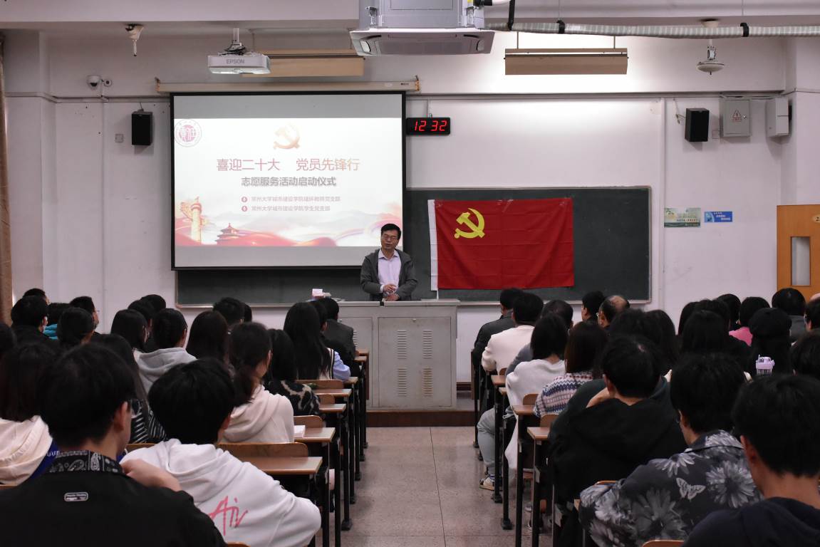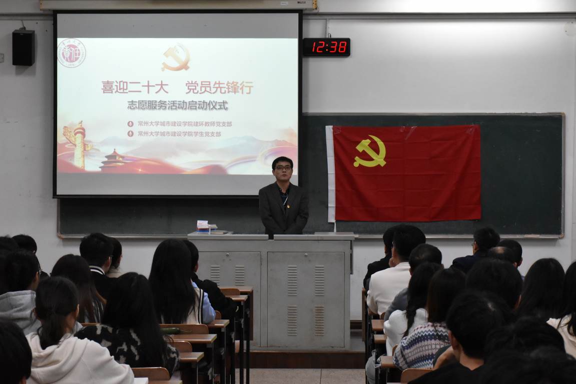金秋迎盛会,共启新征程。为迎接党的二十大胜利召开,深入弘扬志愿服务精神,教育引导广大师生坚定初心跟党走,建功立业新时代。禁漫天堂 特举办以“喜迎二十大,党员先锋行”为主题的志愿活动启动仪式。活动于2022年10月21日在W1213教室举行,由院学生党支部第一支部副书记王发静主持,院党委副书记顾坚,副院长王新杰、许霞,院长助理杜尔登、陈春红、周年勇,建环专业负责人郭强,建环专业教师、教师党支部及学生党支部的全体党员出席活动。