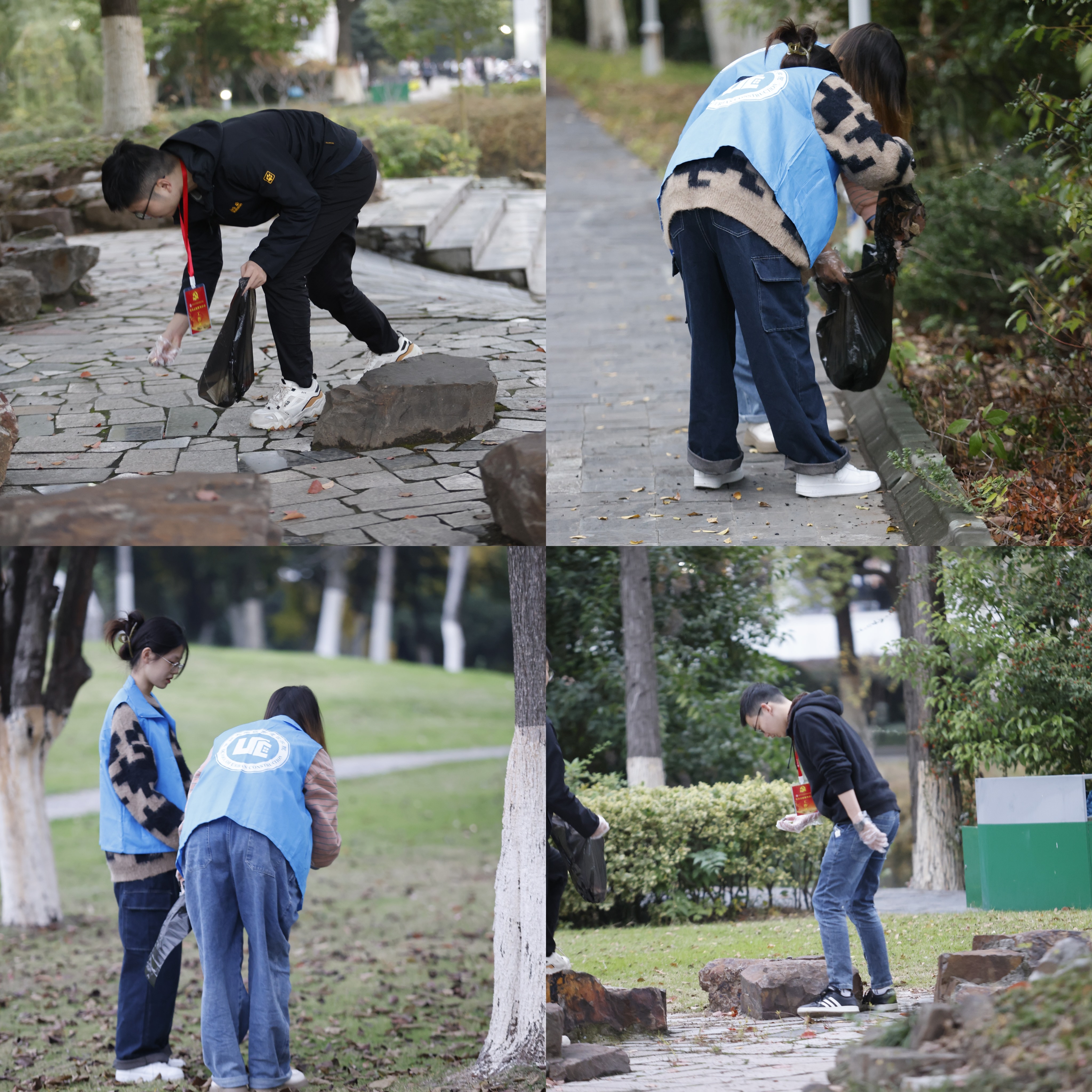 学生党支部于11月20日下午在校园内开展了以“助推低碳,绿色校园”为主题的校园清扫志愿活动,全体学生党员到场参加。