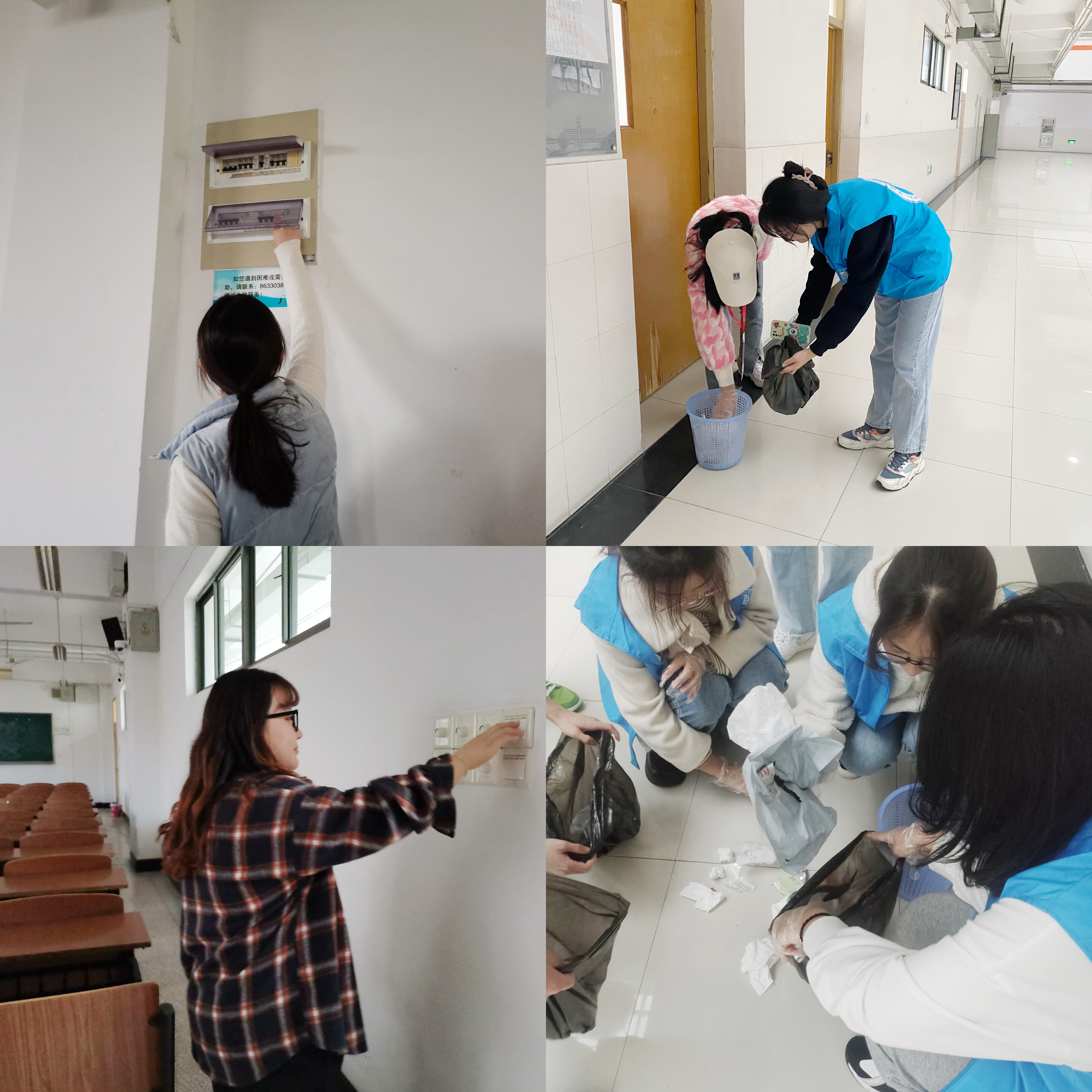 本次活动的主要内容共分为关闭辅楼教室内不必要的灯光电源、辅楼教室垃圾的分类清理、清捡若愚湖旁及校园路面垃圾三项任务。活动起始,志愿者们提前到达指定位置,穿戴好志愿服,领取劳动工具,分成五组,在负责人的带领下有序到达各组分配地点开展志愿服务。活动进程中,志愿者们配合默契、分工合理、目的明确,整个过程秩序井然。微凉的天气丝毫未能影响志愿者们热情洋溢的劳动奉献,无论是校园路面还是辅楼教室,随处可见志愿者们那一抹忙碌的蓝色身影。针对辅楼中许多教室人走灯亮的情况,志愿者们不辞辛苦地逐层排查,挨个熄灭,贯彻低碳节能理念,为学校的节能减排工作贡献力量。他们穿梭于教室之间、弯身在绿化带之中,深入到各个脏乱的角落,从教室的墙角、路面的烟头到路旁绿化带中的塑料袋、果皮,不放过任何死角,充分发挥了不怕脏、不怕累的奉献精神,展现了禁漫天堂 学生党员良好的精神风貌,诠释了奉献、友爱、互助、进步的志愿服务精神,服务于师生,服务于校园。