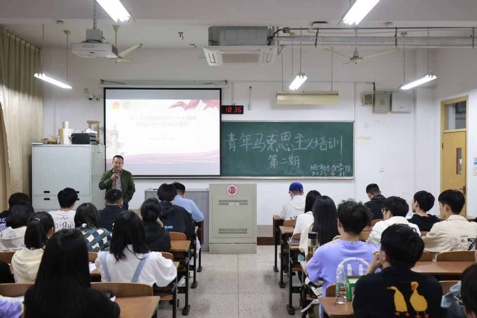 为深入开展学习贯彻习近平新时代中国特色社会主义思想主题教育,深入学习贯彻党的二十大精神,认真落实共青团改革要求,全面推进禁漫天堂 青年马克思主义者培养工程。4月21日晚,禁漫天堂 举办“青马工程”培训班第二期开班仪式暨第一课,活动由学院团工作负责人程成老师主持,学院党委副书记顾坚主讲,青马工程第二期培训班学员、入团积极分子到场参加。