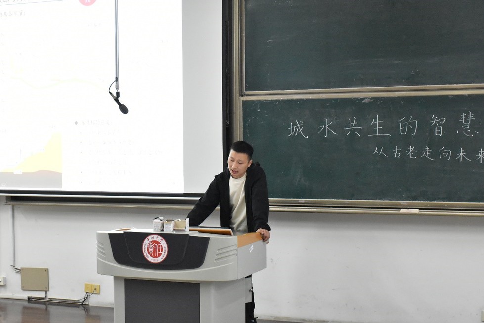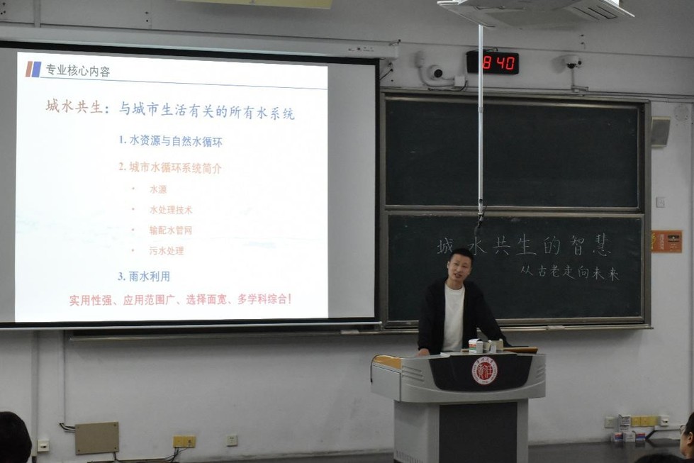 本次导学主题为“城水共生——从古老走向未来”。李谱从给排水科学与工程专业发展史入手,阐述了给排水专业未来发展方向与专业核心内容,介绍了海绵城市、海水淡化技术、资源回收、智慧水务等研究方向的发展前景。讲座期间学生与李谱积极互动,在问答中进一步加深对给排水专业的了解。最后,李谱鼓励学生培养广泛的知识面,拓宽可选择领域,提高综合能力,成为“π”字型人才。
