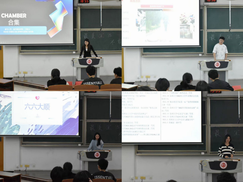 据悉,本届寝室文化节活动从寝室“文明建设”之星评选、学霸寝室评选、“寝室全家福”风采展、优秀寝室长评选、最美寝室评选、“青春心向党,'寝'听我来说—城建院学子学习二十大纪实寝室风采展等6个环节展开。决赛活动现场,各宿舍代表精心准备,通过PPT展示或播放vlog介绍宿舍日常,选手们重点介绍自己宿舍的环境:包含桌面摆放情况,阳台卫生情况,床铺整洁情况以及墙面设计,其次介绍宿舍成员以及成员的成绩和荣誉,接着再介绍宿舍成员间的美好回忆,一张张亲手拍下的照片封存着只属于ta们的独家回忆。评比中既有vlog视频大放异彩的展示,更有如“知乎居”等文艺雅致的寝室牌匾。台下掌声不断,同学们反馈积极,活动进行如火如荼,邱佳音等评委五人认真记录,细致点评,本届文化节最终评选出一等奖6名,二等奖11名,三等级19名。