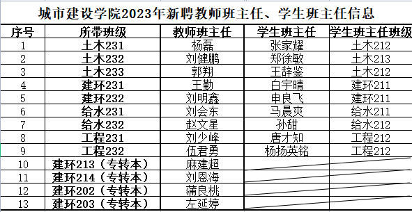 经教师本人申请,各专业推荐,学院相关负责人审核、评选,现将2023年新聘教师班主任拟聘人选杨磊等13人公示如下;经学生本人申请,学工办审核、评选,现将2023级学生班主任拟聘人选张家耀等9人公示如下: