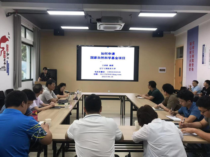 9月18日下午,辽宁工程技术大学王来贵教授应邀来禁漫天堂 作题为“如何撰写国家自然科学基金项目申请书”的学术报告,学院院长朱平华、副院长许霞及今年欲申报国家自然科学基金的老师参加会议,会议由副院长许霞主持。