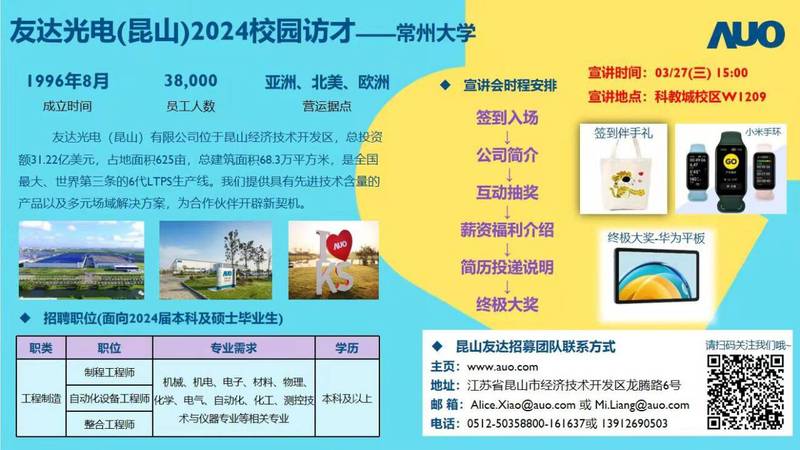 招聘[2024093]友达光电(昆山)2024春季校园招聘