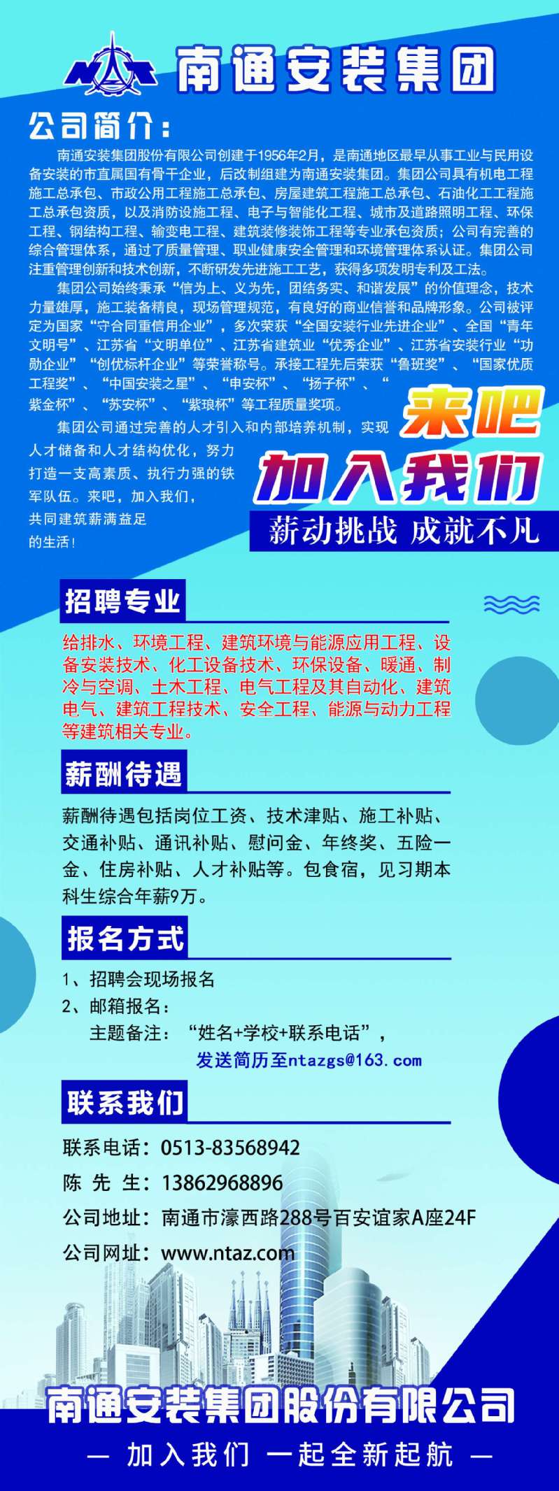 招聘[2024095]南通安装集团股份有限公司2024春季校园招聘