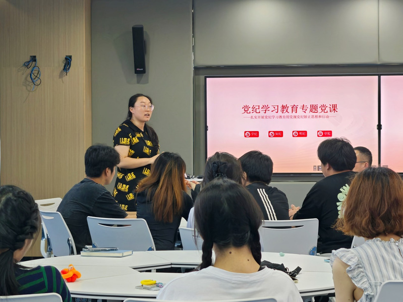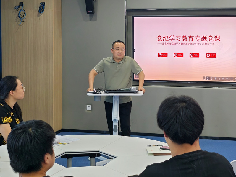 为持续推动党纪学习教育走深走实,7月4日,禁漫天堂 学生党支部在W1708教室开展“以案明纪,以纪正风”专题教育党课,会议由学生第一党支部书记邵丹迪主持,学院党委副书记顾坚、学生工作办公室主任封晓鸣、学生第二党支部书记李欣一、研究生党支部书记张争及全体学生党员到场参加。