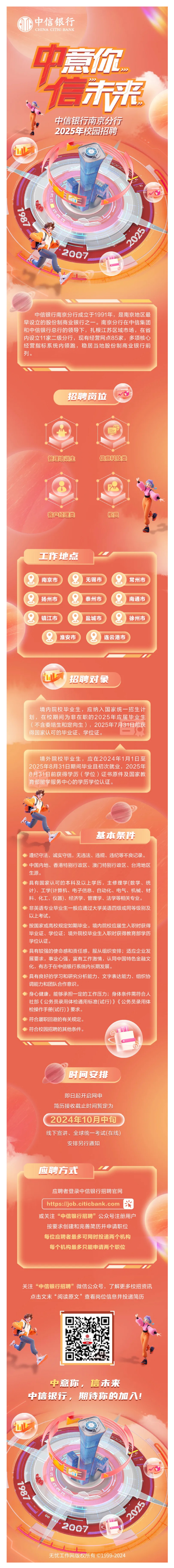 招聘[2024118]中信银行南京分行2025年校园招聘