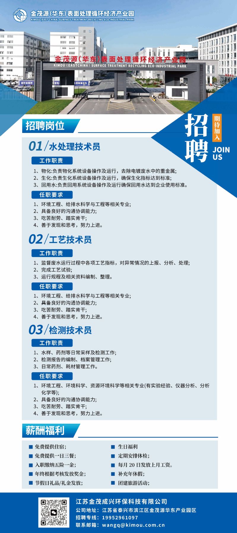 招聘[2024161]江苏金茂成兴环保科技有限公司2025届校招