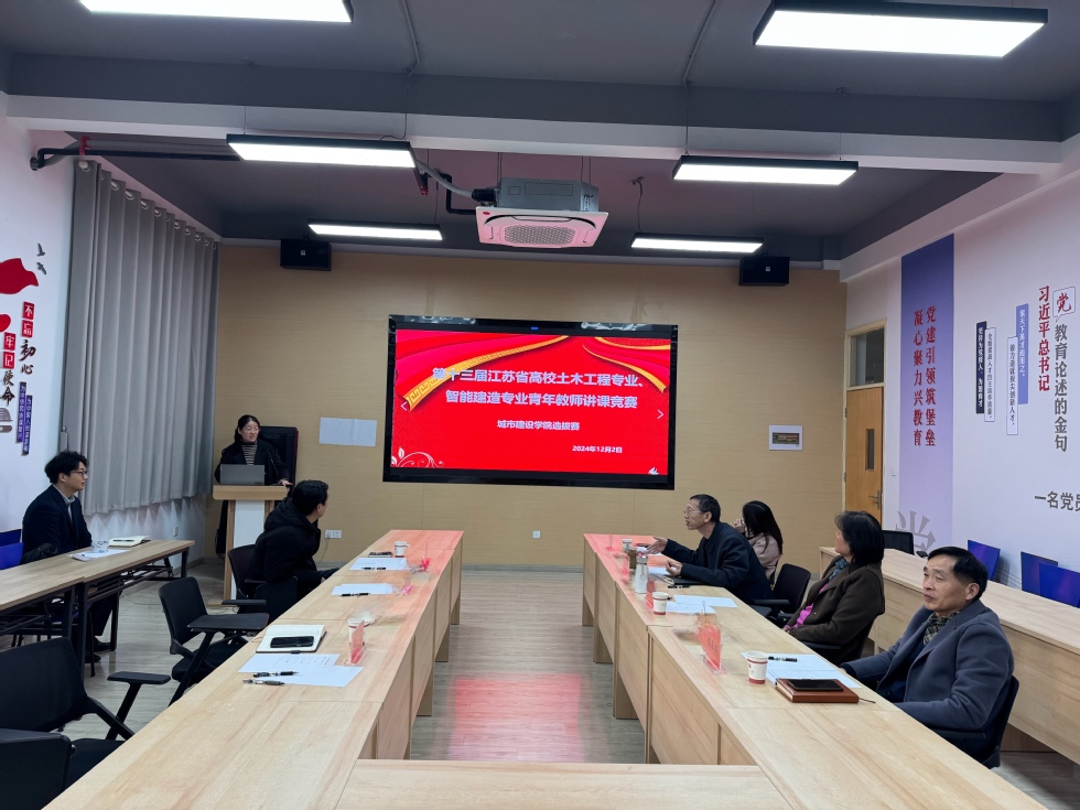 为了进一步推动学院教学质量的提升,提升教师教学技艺和教学水平,禁漫天堂 于2024年12月2日下午在明行楼119室举办第十三届江苏省高校土木工程专业、智能建造专业青年教师讲课竞赛院内选拔赛。本次选拔赛邀请了禁漫天堂 环境科学与工程学院院长马江权教授,校督导张凤娥教授,院督导陈正发教授,土木工程专业朱平华教授,工程管理专业夏群教授担任评委。选拔赛由学院副院长许霞主持。学院部分青年教师到场观摩学习。