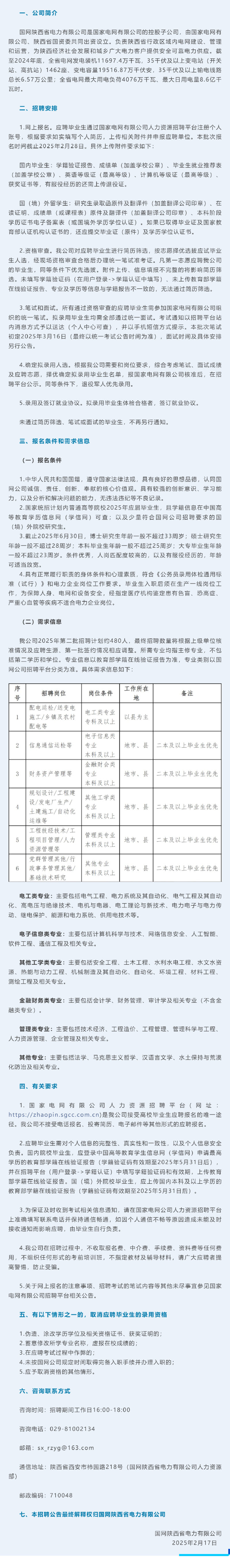 招聘[2024201]国网陕西省电力有限公司招聘公告