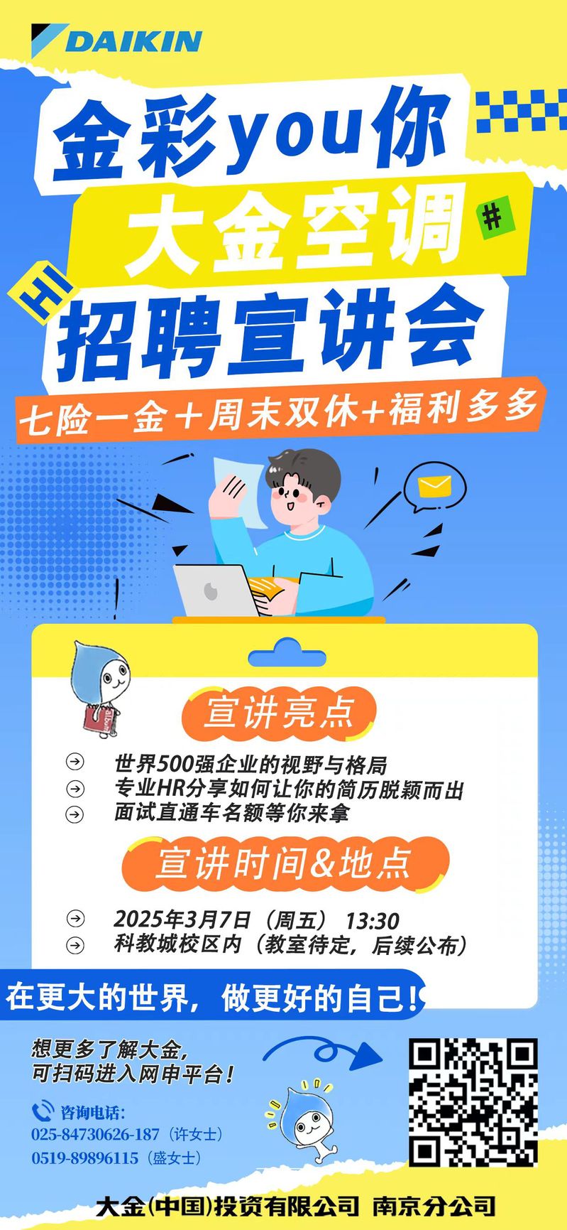 招聘[2024205]大金(中国)投资有限公司南京分公司禁漫天堂 校园宣讲会