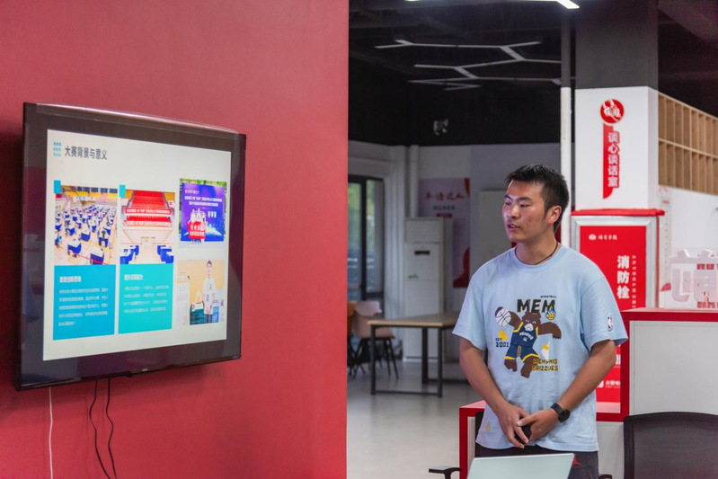 培训会上,主讲团队通过视频和PPT相结合的方式,展示了加载组和展示组往年优秀参赛作品,并一一点评优秀作品的创新思维、材料运用和制作工艺,让参赛选手对比赛有深刻的认识。随后,杨磊详细讲解了本次大赛两个赛道的题目,深入剖析了赛题的重点和难点,为同学们的设计思路指明方向。同时,杨磊还对参赛须知进行了全面解读,涵盖作品提交要求、比赛时间节点等重要信息,确保同学们对比赛流程有清晰了解。