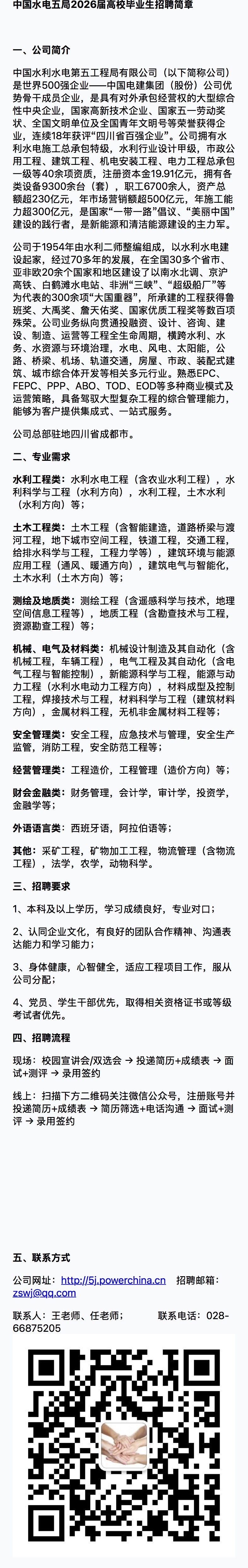 招聘宣讲会[2025008]中国水电五局2026届毕业生秋季校园招聘