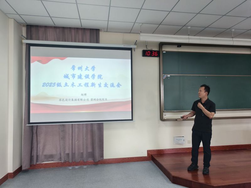 为帮助2025级土木工程专业新生提升专业认识,了解专业的培养目标、毕业要求、课程体系等信息,做好学业和职业规划,9月13日上午,土木工程系在西太湖校区立德楼5阶举办2025级新生专业思想教育。学院邀请行业专家苏邑设计集团常州分院院长赵博高级工程师开展新生入学教育讲座。会议由土木工程专业负责人王少伟主持,2025级土木工程专业全体新生参加。