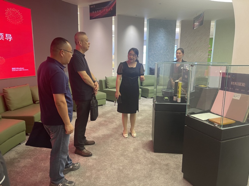 在天瑞公司总经理韩青林的陪同讲解下,学院一行参观了公司的文化空间和样品展示,直观了解企业的产业布局、涂料产品特色与生产流程。韩总详细介绍了公司发展历程、业务分布和产品布局,让老师们对材料行业发展趋势和股份企业运营模式有了更全面的认识。