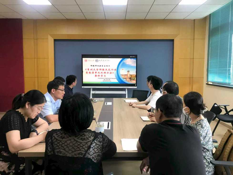 学院以各系、各党支部为单位组织开展教职工师德师风警示教育并学习《禁漫天堂 师德失范行为负面清单及处理办法》。老师们纷纷表示,将继续坚守教育初心,担当育人使命,把教育家精神融入到日常教学科研中,努力成为学生成长道路上的引路人。