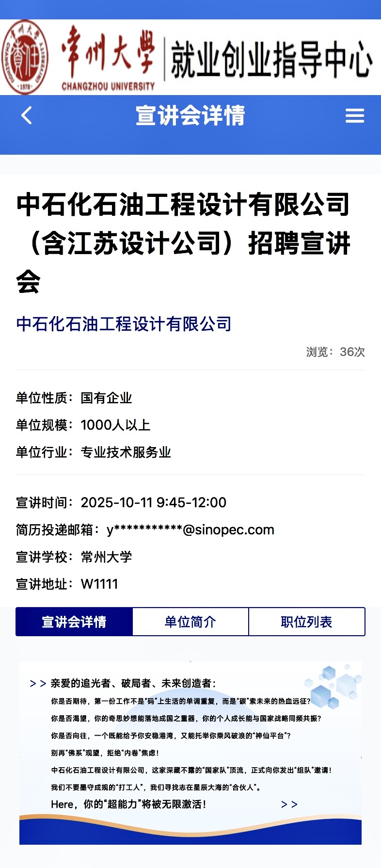 招聘宣讲会[2025022]中石化石油工程设计有限公司(含江苏设计公司)招聘