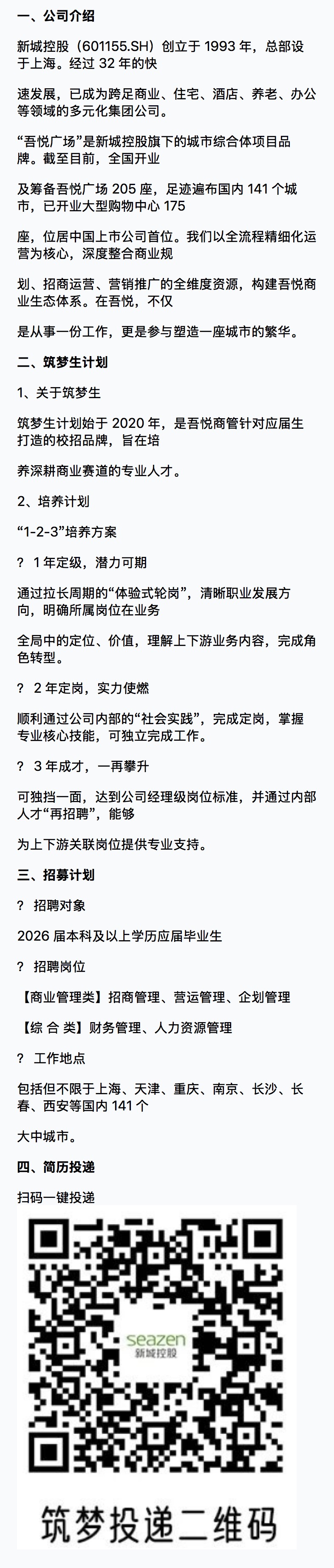 招聘宣讲会[2025049]新城控股商业管理事业部2026届【筑梦生】校园招聘