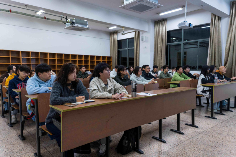 讲座中,裴孟紧扣参赛PPT这一核心环节展开深入剖析。他结合往届优秀参赛案例与常见失误,从逻辑架构搭建、数据可视化呈现、视觉设计优化三个方面,为同学们提供了极具针对性的指导建议,强调PPT需精准匹配项目核心亮点,以简洁精炼的语言传递关键信息。此外,针对备赛全流程,裴孟进一步梳理了三大注意事项:一是深度挖掘项目的创新性与市场可行性,突出差异化竞争优势;二是提前模拟答辩场景,强化对评委高频问题的应答能力;三是注重团队协作细节,确保材料提交与现场展示环节无缝衔接。