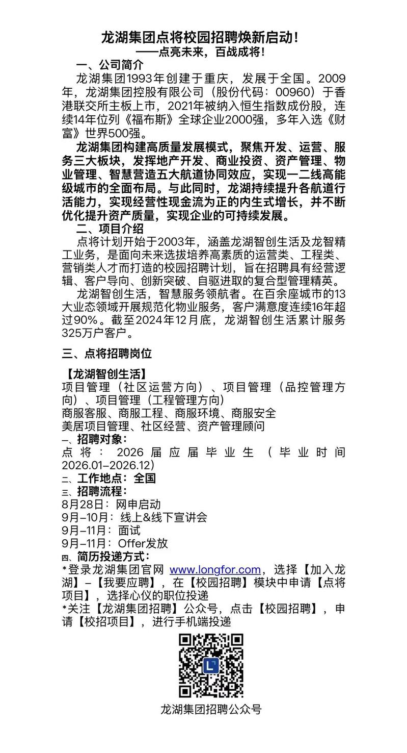 招聘宣讲会[2025057]龙湖集团校园招聘宣讲会