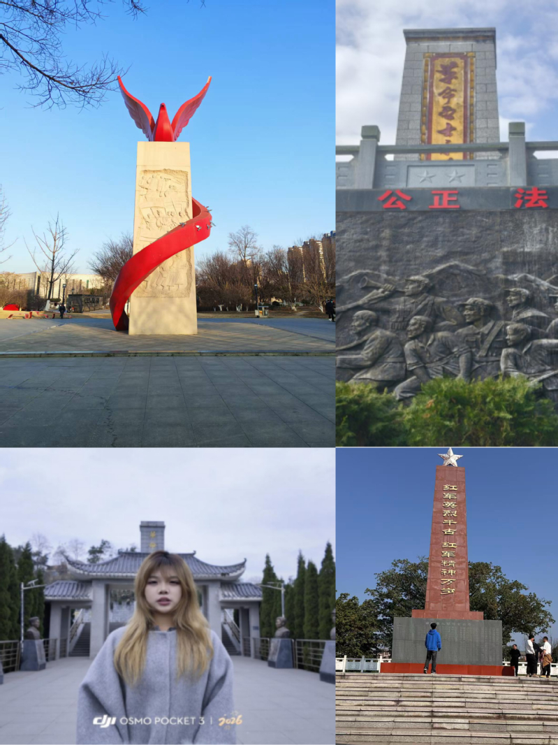 活动以短视频、照片、文字为核心创作载体,鼓励同学们立足家乡热土,寻访身边红色建筑,深度挖掘建筑背后的革命故事,用影像与文字传承红色基因。给水251颜子卿寻访南京雨花台,在历史遗迹中感悟革命先烈的崇高精神;给水251龚苏琴专程探访安州区烈士陵园,深入了解刘稚琳烈士的事光荣迹,重温峥嵘岁月;工程254陈千帆前往家乡江苏省南通市烈士陵园,对园内革命烈士纪念碑、“三·一八”烈士纪念碑等红色建筑开展实地寻访与拍摄记录;工程242扶钰莹次实践以江西省崇义县革命烈士纪念塔为主要调研与学习地点,通过实地参观、资料查阅、访谈交流和感悟撰写等方式,追寻革命足迹,体悟信仰力量。